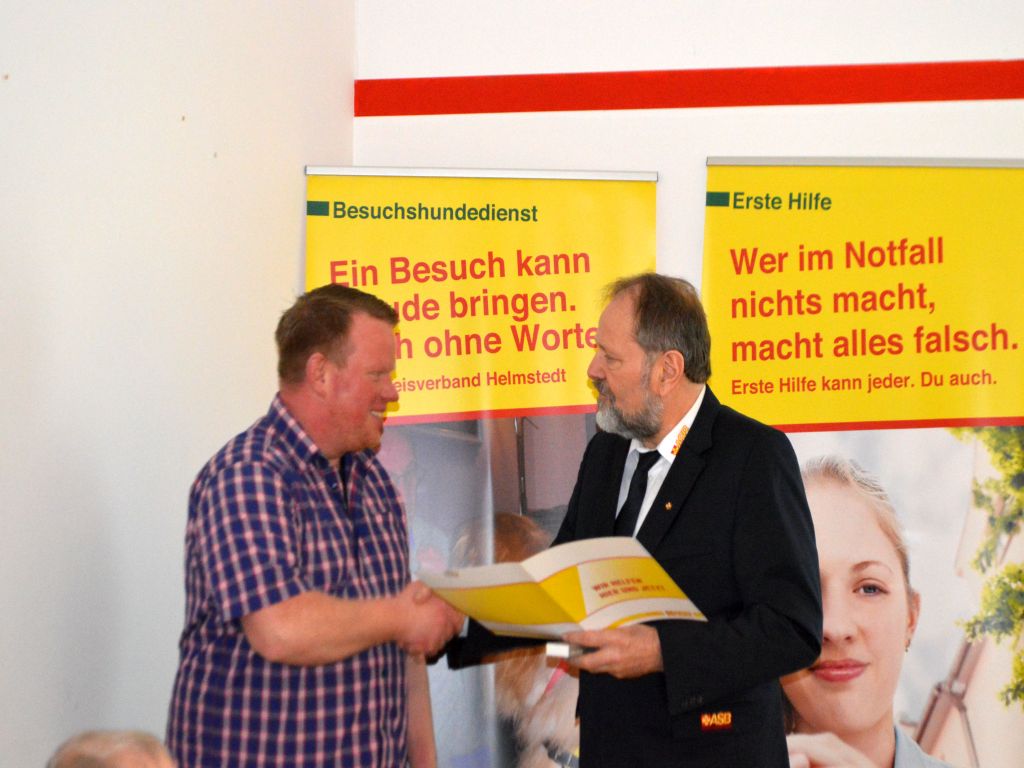 Auch wenn das Protokoll dieses Jahr keine Ehrungen vorgesehen hatte, wurde Fabian Nessel für 20 Jahre ASB Mitgliedschaft geehrt, er erhielt die Ehrenplakette in Bronze